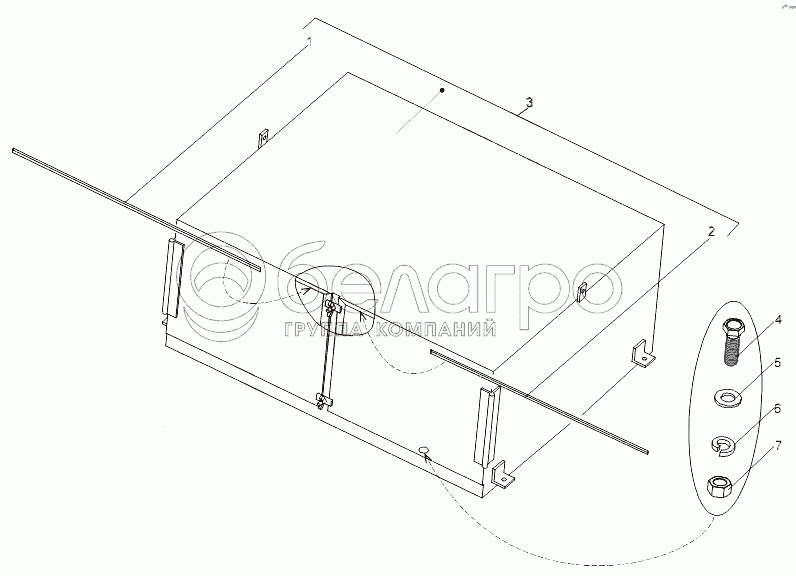 Каталог запасных частей к технике: МЗКТ-79091. Установка инструментального ящика