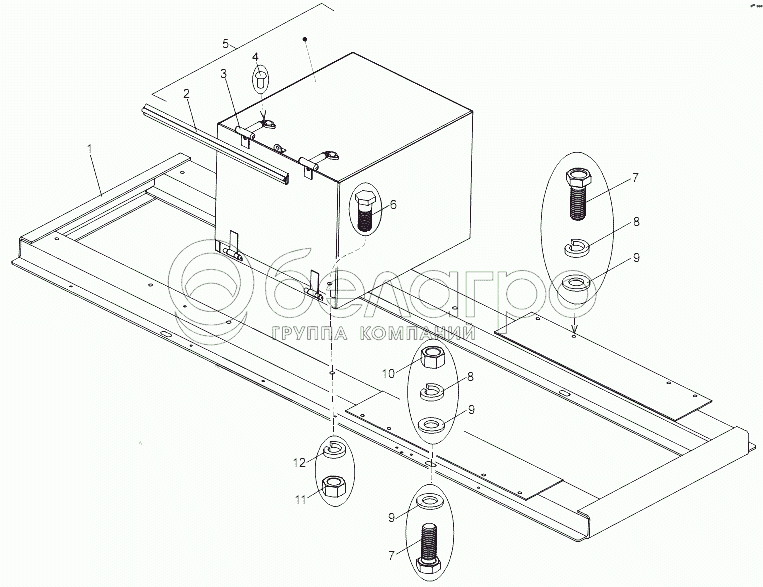 Каталог запасных частей к технике: МЗКТ-79091. Установка инструментального ящика