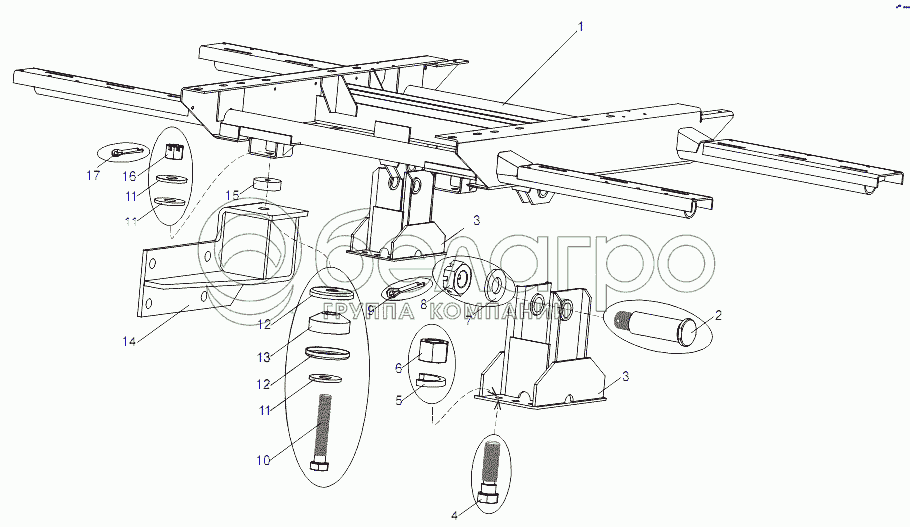 Каталог запасных частей к технике: МЗКТ-79091. Установка подрамника