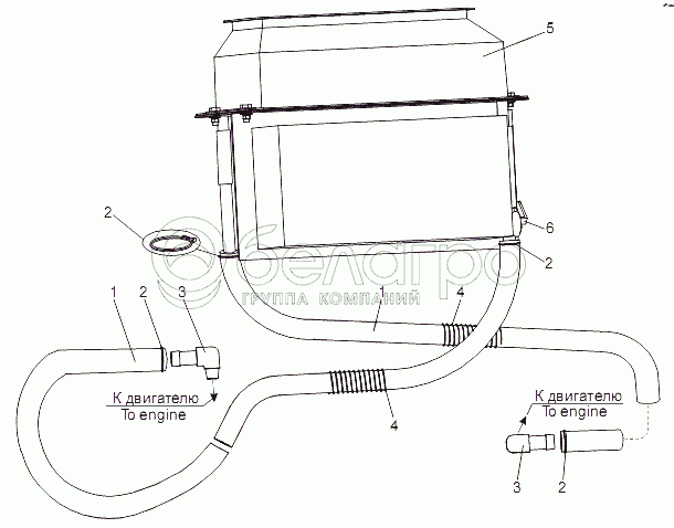 Каталог запасных частей к технике: МЗКТ-79091. Установка трубопроводов отопителя кабины