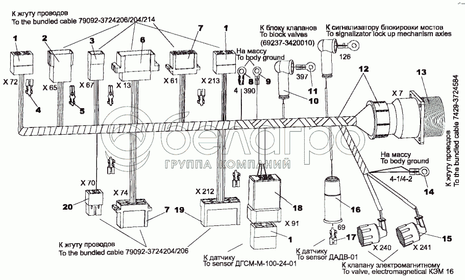 Каталог запасных частей к технике: МЗКТ-79091. Жгут проводов 7429-3724027-10