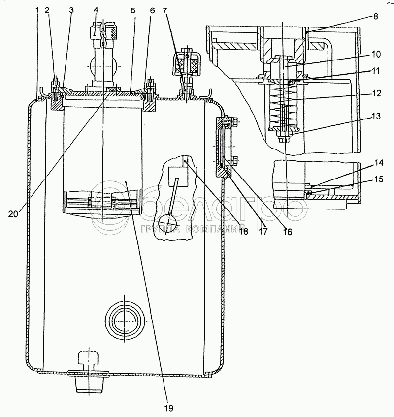 Каталог запасных частей к технике: МЗКТ-79092. Бак масляный