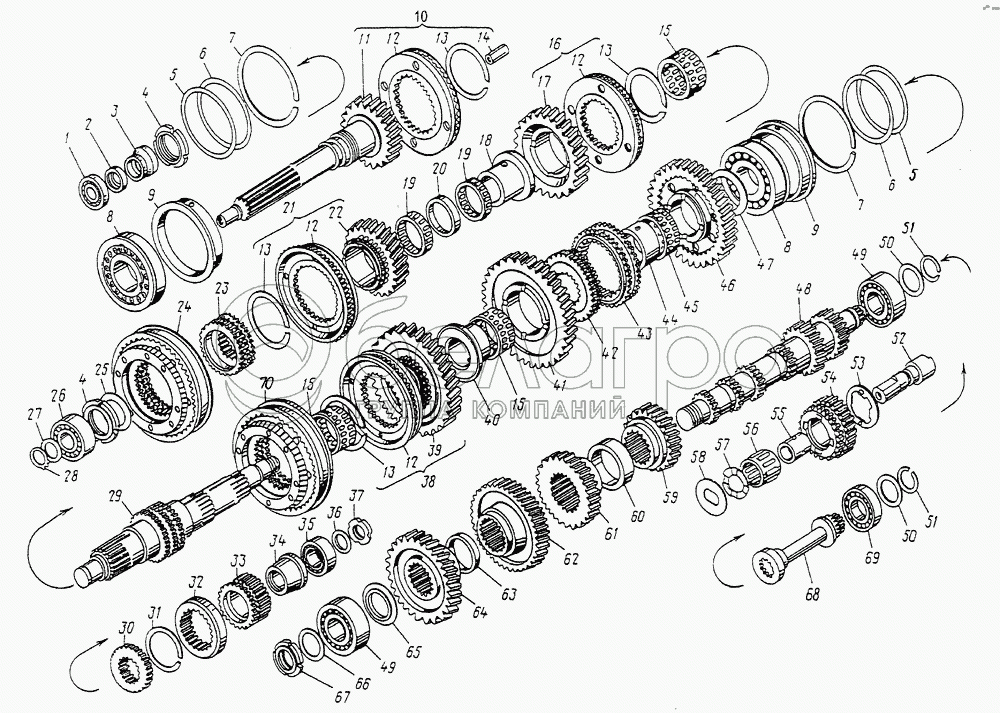 Каталог запасных частей к технике: МЗКТ-79092. Детали коробки передач