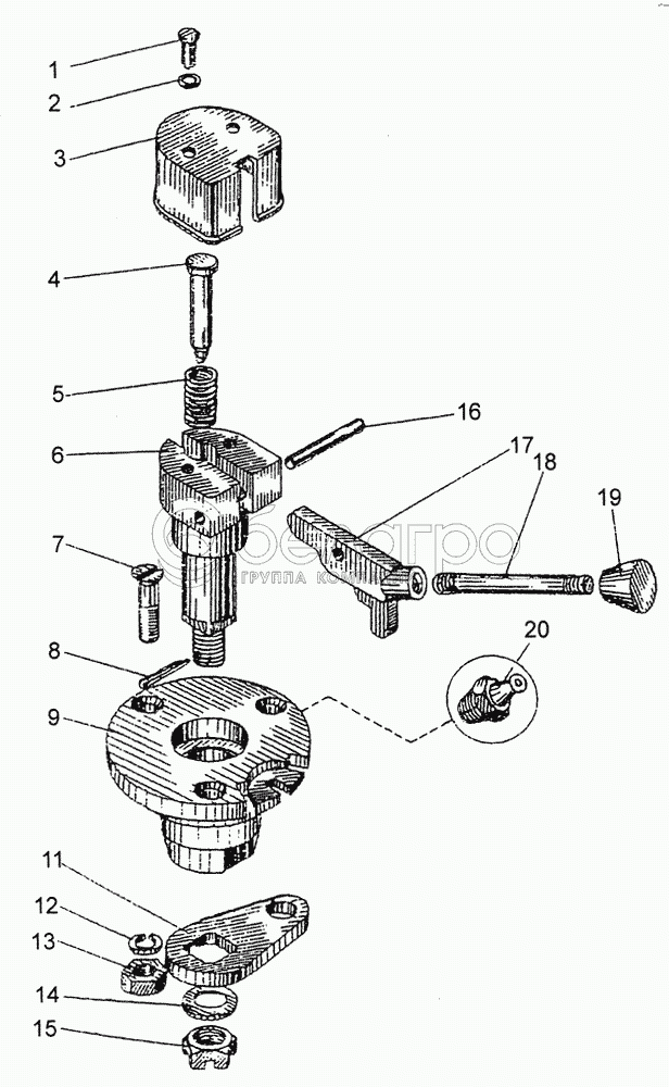 Каталог запасных частей к технике: МЗКТ-79092. Кран управления давлением в системе накачки шин