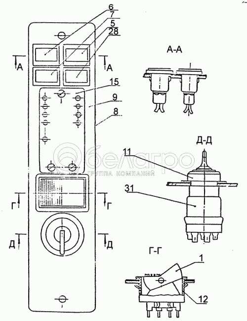 Каталог запасных частей к технике: МЗКТ-79092. Панель контрольных ламп