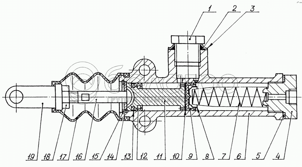 Каталог запасных частей к технике: МЗКТ-79092. Подпедальный цилиндр