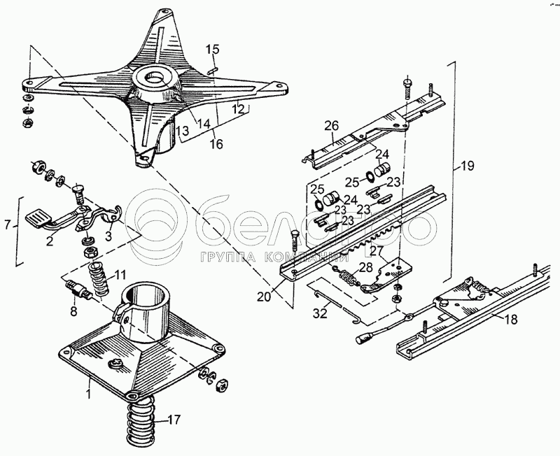 Каталог запасных частей к технике: МЗКТ-79092. Подставка сиденья и регулировочный механизм
