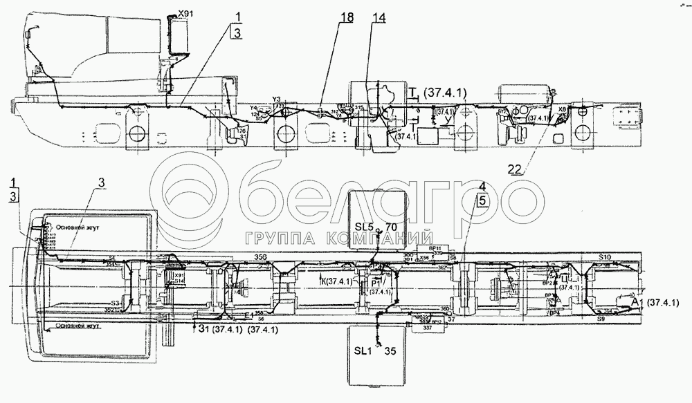 Каталог запасных частей к технике: МЗКТ-79092. Установка электрооборудования на шасси