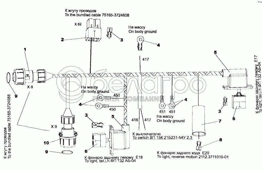 Каталог запасных частей к технике: МЗКТ-79096. Жгут проводов 75165-3724026