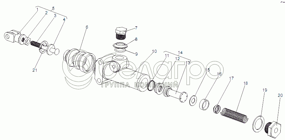 Каталог запасных частей к технике: МЗКТ-79097. Подпедальный цилиндр 69237-1602300