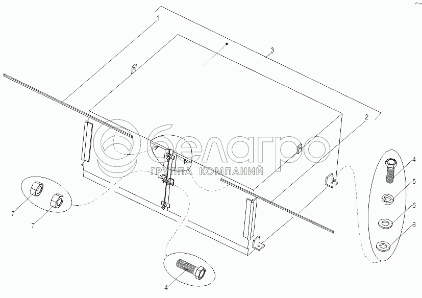Каталог запасных частей к технике: МЗКТ-79097. Установка инструментального ящика