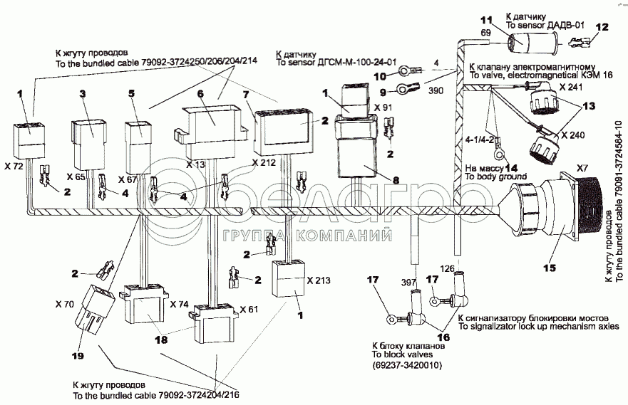 Каталог запасных частей к технике: МЗКТ-79097. Жгут проводов 79091-3724027-10