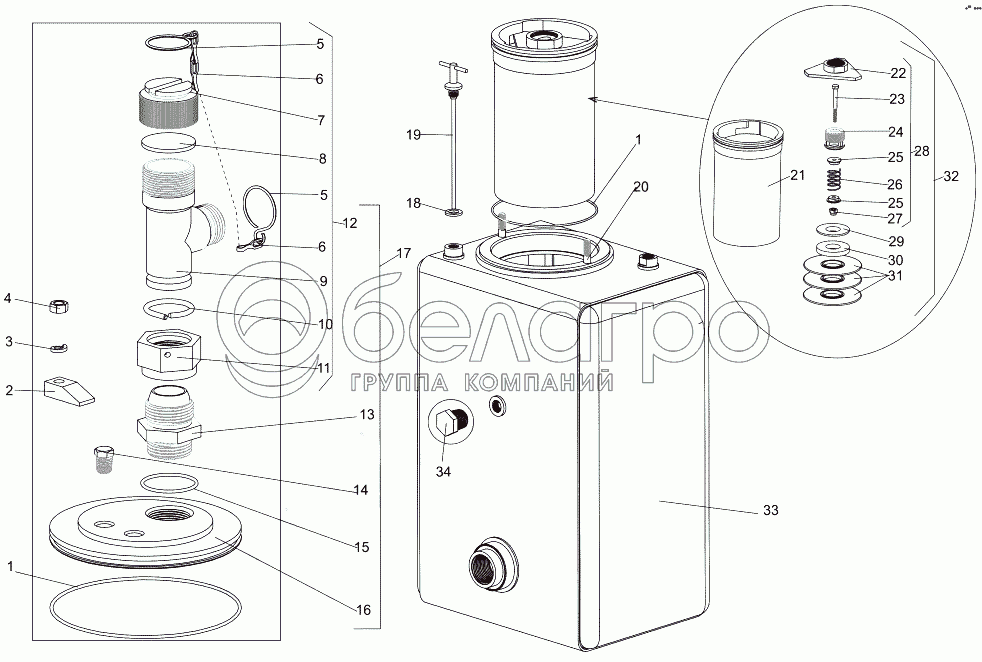 Каталог запасных частей к технике: МЗКТ-7930-200. Бак с фильтром 7930-1917010-40