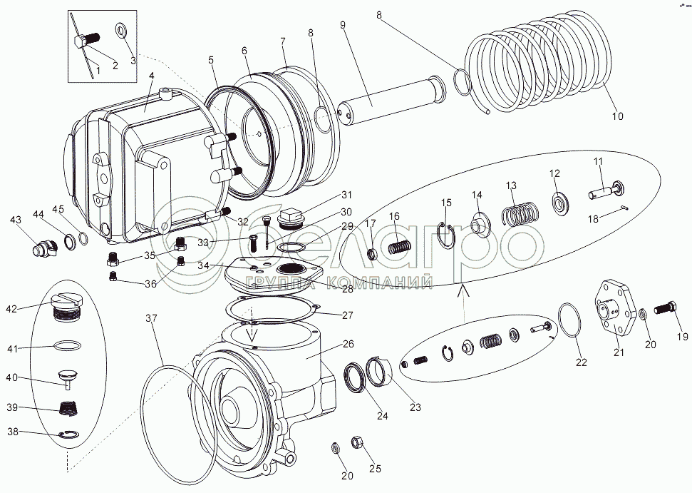Каталог запасных частей к технике: МЗКТ-7930-200. Главный тормозной цилиндр 7414-3505010
