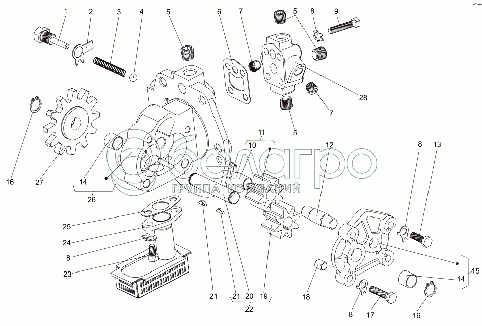 Каталог запасных частей к технике: МЗКТ-7930-200. Масляный насос