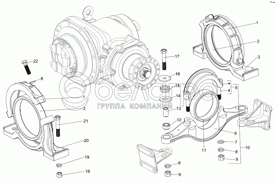 Каталог запасных частей к технике: МЗКТ-7930-200. Подвеска редуктора моста