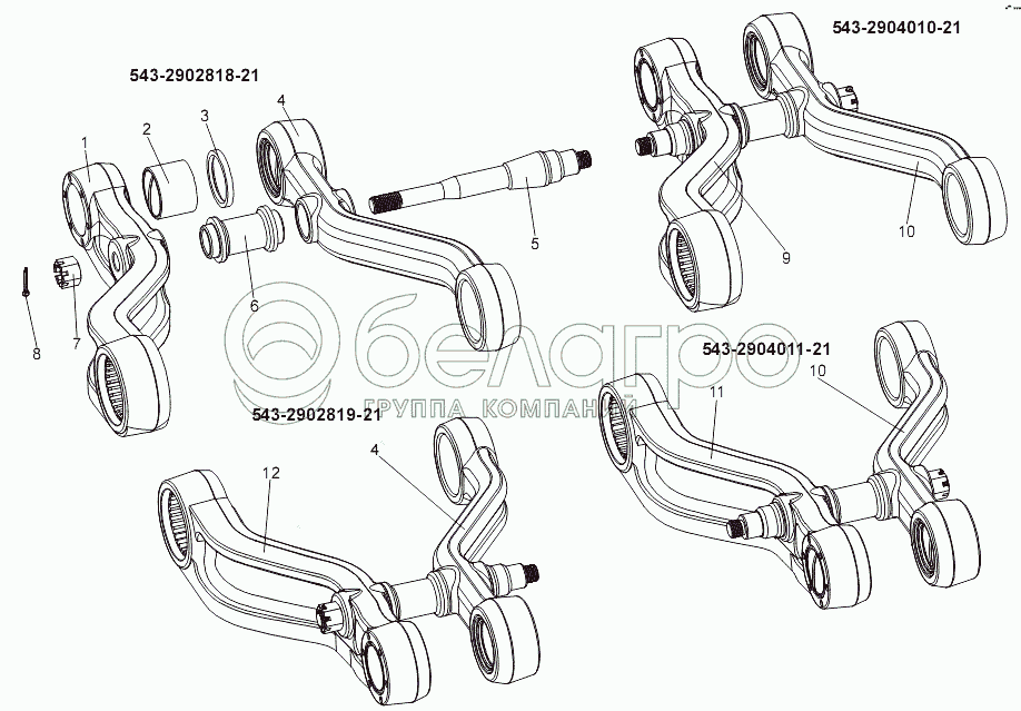 Каталог запасных частей к технике: МЗКТ-7930-200. Рычаги подвески нижние передние