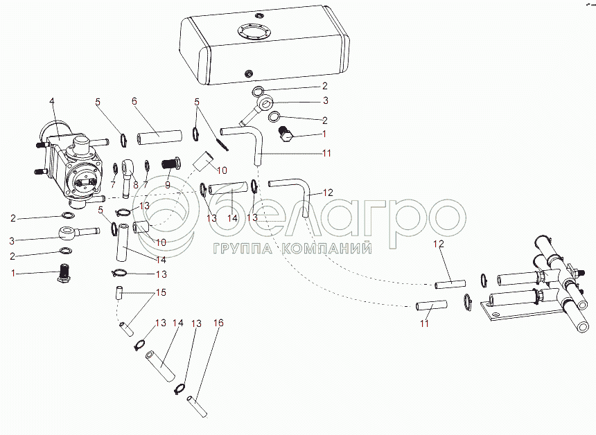 Каталог запасных частей к технике: МЗКТ-7930-200. Топливопроводы бака пускового топлива