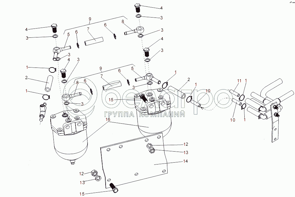 Каталог запасных частей к технике: МЗКТ-7930-200. Топливопроводы фильтров грубой очистки
