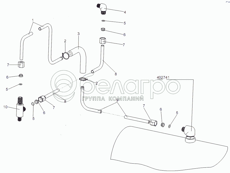 Каталог запасных частей к технике: МЗКТ-7930-200. Трубопроводы от воздушного баллона потребителей