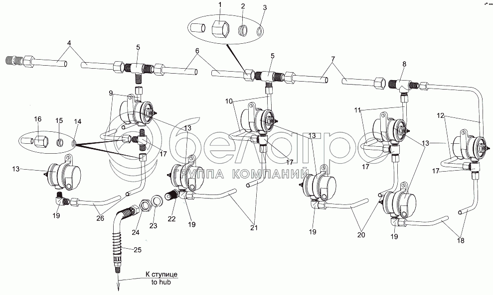 Каталог запасных частей к технике: МЗКТ-7930-200. Трубопроводы системы накачки шин