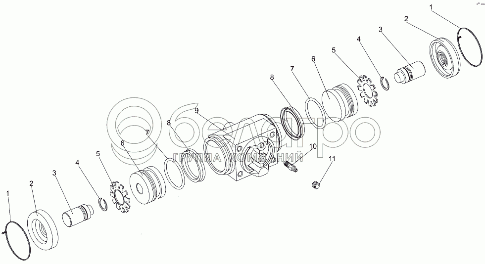 Каталог запасных частей к технике: МЗКТ-7930-200. Цилиндр колесного тормоза 7917-3501050