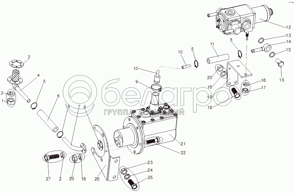 Каталог запасных частей к технике: МЗКТ-7930-200. Установка агрегатов к левому топливному баку
