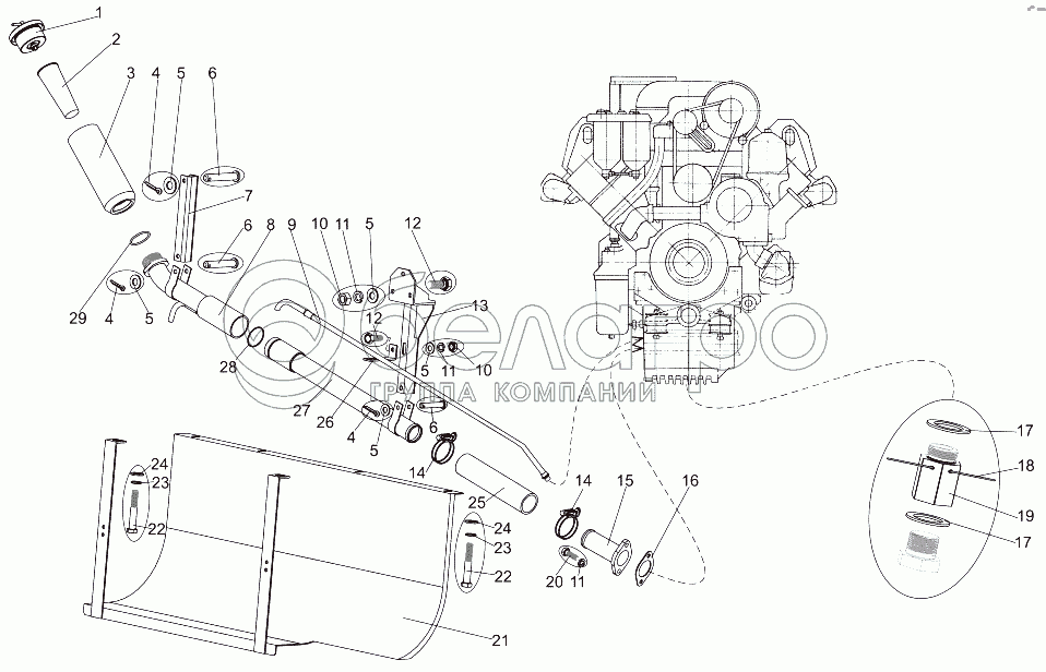 Каталог запасных частей к технике: МЗКТ-7930-200. Установка агрегатов системы смазки двигателя