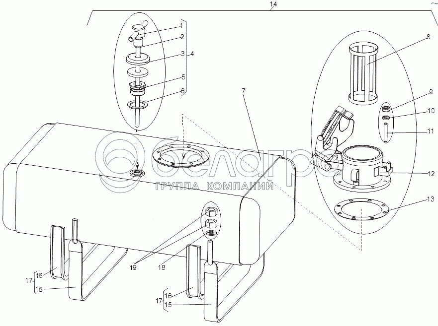 Каталог запасных частей к технике: МЗКТ-7930-200. Установка бака пускового топлива