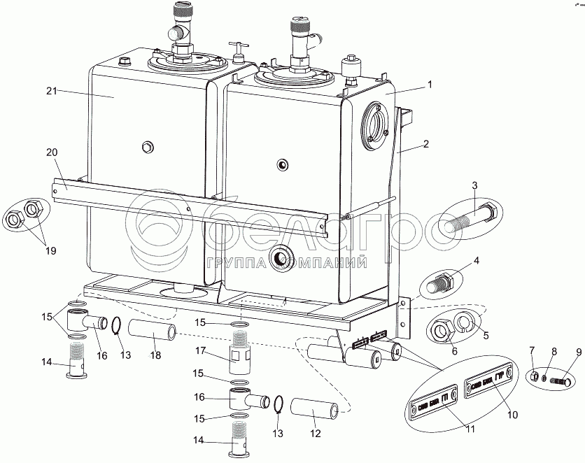 Каталог запасных частей к технике: МЗКТ-7930-200. Установка баков