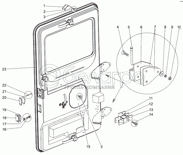 Каталог запасных частей к технике: МЗКТ-7930-200. Установка двери