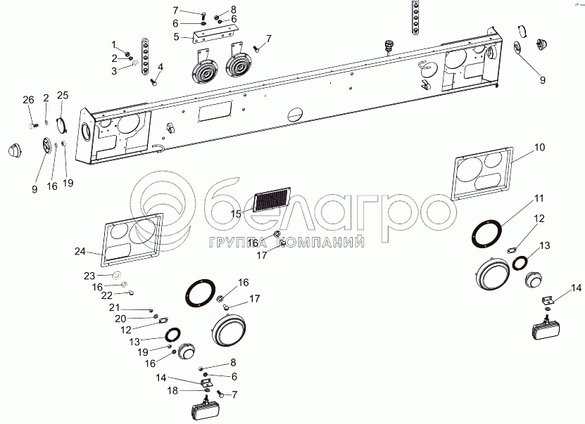 Каталог запасных частей к технике: МЗКТ-7930-200. Установка фар и фонарей передних