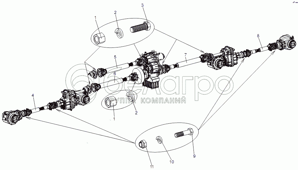 Каталог запасных частей к технике: МЗКТ-7930-200. Установка карданных валов