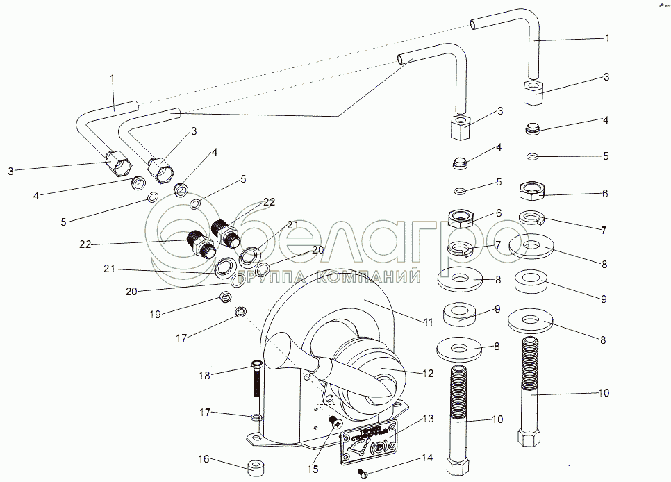 Каталог запасных частей к технике: МЗКТ-7930-200. Установка крана стояночного тормоза