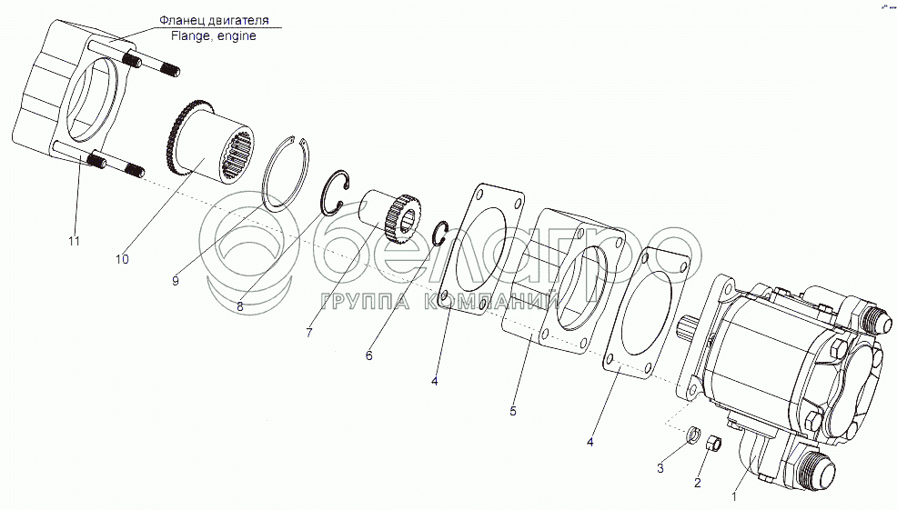 Каталог запасных частей к технике: МЗКТ-7930-200. Установка насоса гидроусилителя