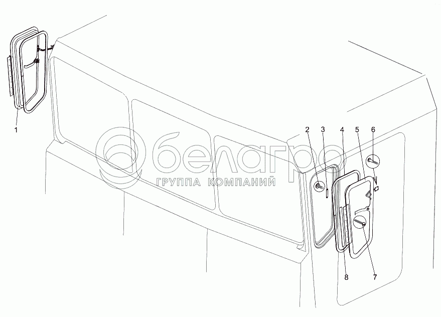 Каталог запасных частей к технике: МЗКТ-7930-200. Установка окон боковин