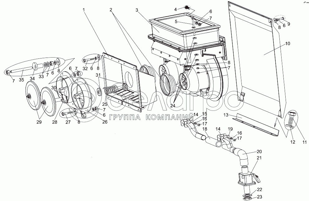 Каталог запасных частей к технике: МЗКТ-7930-200. Установка отопителя