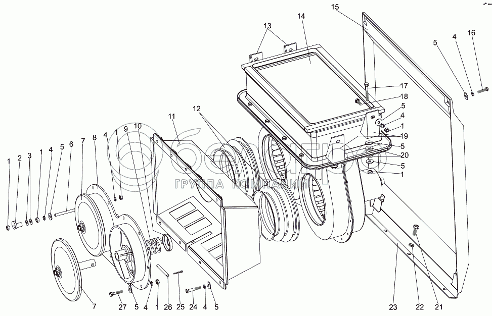 Каталог запасных частей к технике: МЗКТ-7930-200. Установка отопителя
