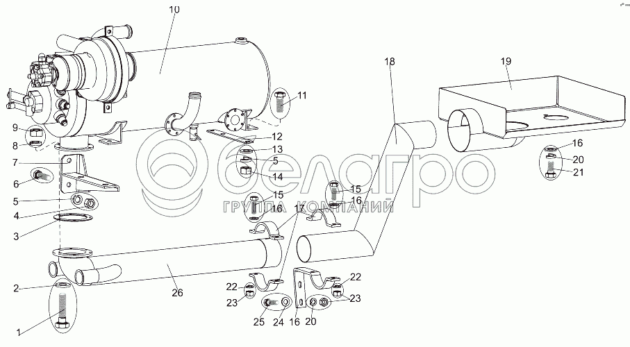Каталог запасных частей к технике: МЗКТ-7930-200. Установка подогревателя и выхлопных труб