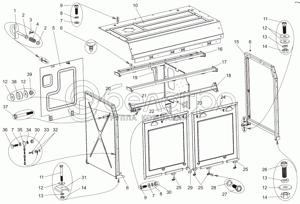 Каталог запасных частей к технике: МЗКТ-7930-200. Установка правого ограждения