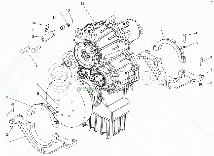 Каталог запасных частей к технике: МЗКТ-7930-200. Установка раздаточной коробки
