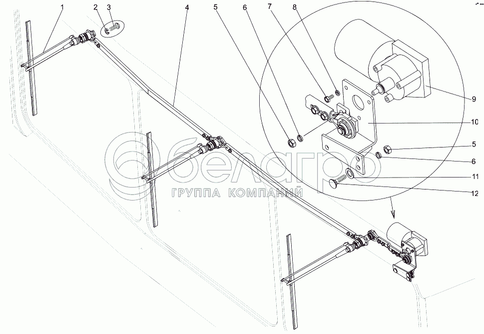 Каталог запасных частей к технике: МЗКТ-7930-200. Установка стеклоочистителя