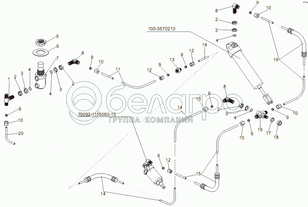 Каталог запасных частей к технике: МЗКТ-7930-200. Установка трубопроводов моторного тормоза
