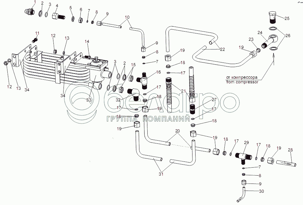 Каталог запасных частей к технике: МЗКТ-7930-200. Установка влагомаслоотделителя
