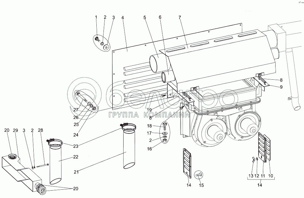 Каталог запасных частей к технике: МЗКТ-7930-200. Установка воздуховодов отопителя кабины