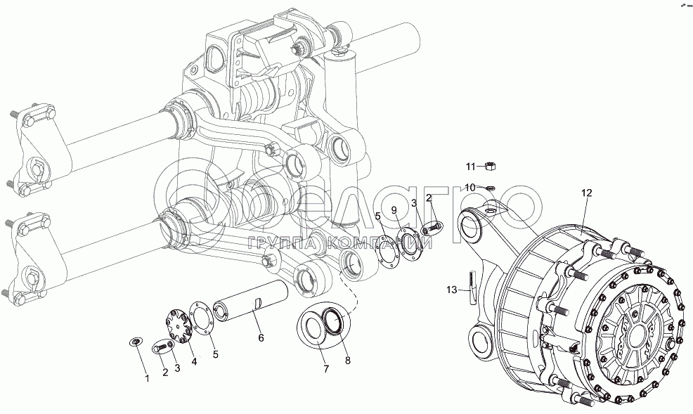 Каталог запасных частей к технике: МЗКТ-7930-200. Установка задней ступицы