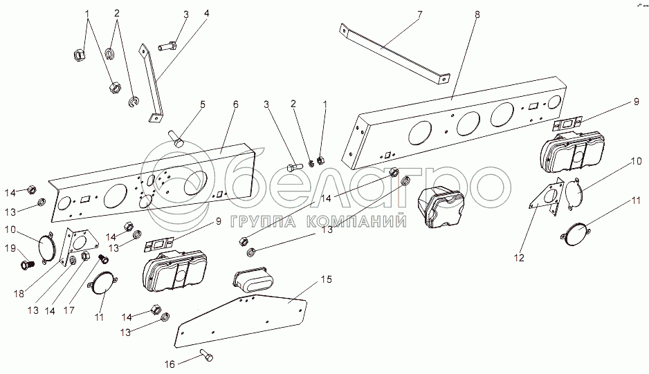 Каталог запасных частей к технике: МЗКТ-7930-200. Установка задних фонарей