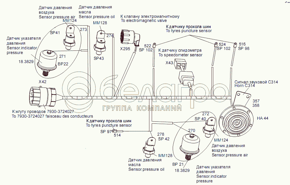 Каталог запасных частей к технике: МЗКТ-7930-200. Жгут проводов 7930-3724584