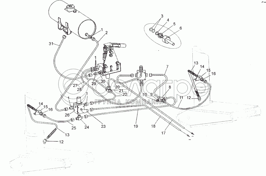 Каталог запасных частей к технике: МЗКТ-93782. Установка трубопроводов гидросистемы опорного устройства