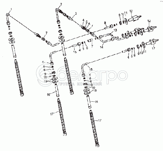 Каталог запасных частей к технике: МЗКТ-93782. Установка трубопроводов накачки шин левых колес